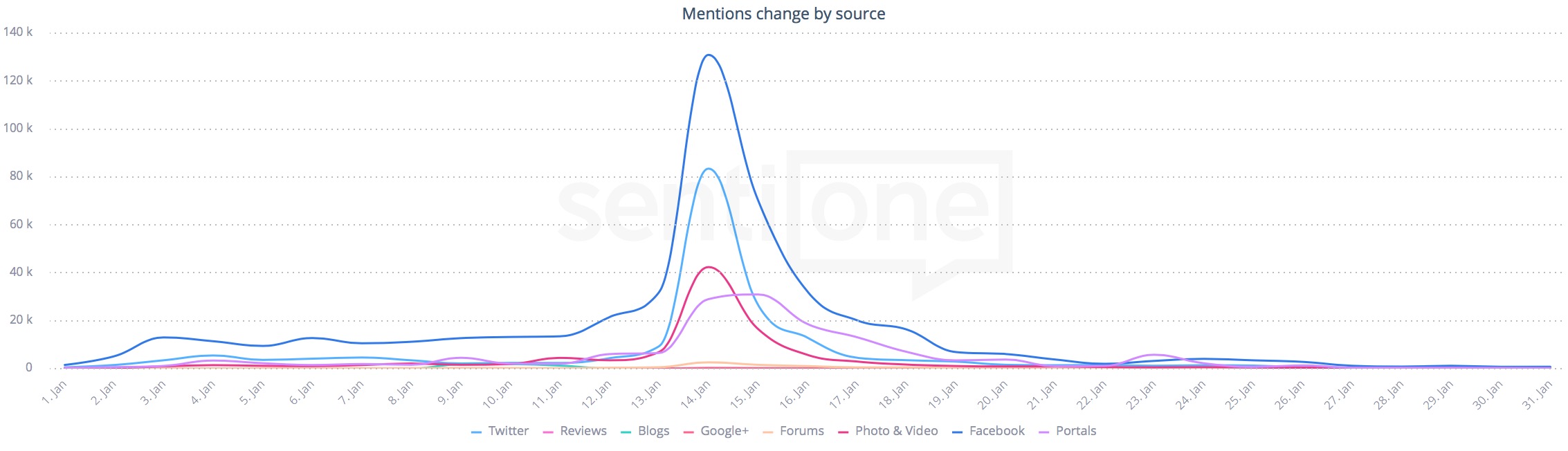 Graph of sources via which internet users discussed the Great Orchestra of Christmas Charity’s topic in January. Source: SentiOne.