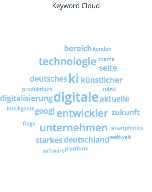 Die Keyword Cloud zeigt, welche Begriffe in Verbindung mit Künstlicher Intelligenz besonders oft online erwähnt werden.