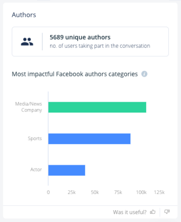 In addition, the “Authors” insight provides users with information about the unique users participating in discussions across all sources. You can now see the number of people who have posted mentions and actively participated in conversations on social media.