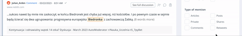 In response to user feedback and requests, we have introduced a new type of mention in SentiOne: Retweets. Users can now find Retweets as a separate category in the “Type of mention” filter, allowing for more customized and advanced analyses.