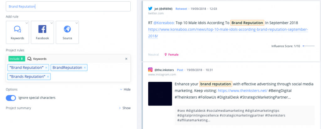 How to do it? The key is using a proper online listening tool, obviously. If you have that covered, all you need to do is create the right projects, determining your areas of interest and tracking industry topics. It’s best to set up a project to get all publications around a topic you want to follow, explore, and discuss.