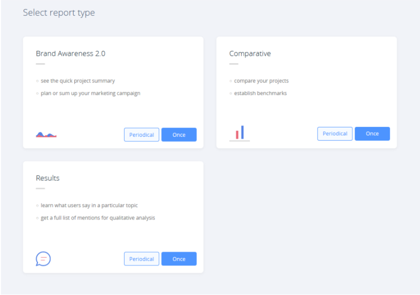 - Comparative — like the name suggests, this report is best used for monitoring several different projects against each other. Its ability to set benchmarks allows you to determine which of your rivals had the best reach, sentiment, or engagement during a given time period.