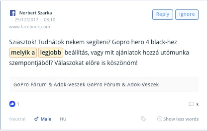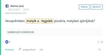 Mindez pedig működhet LIVE vagy akár az elmúlt 3 évre vetítve. Akár magyar nyelven, akár másik 29 európai piacon. Publikus Facebook posztoktól kezdve, tweeteken és Instagram bejegyzéseken keresztül a fórum- vagy blogkommentekig.