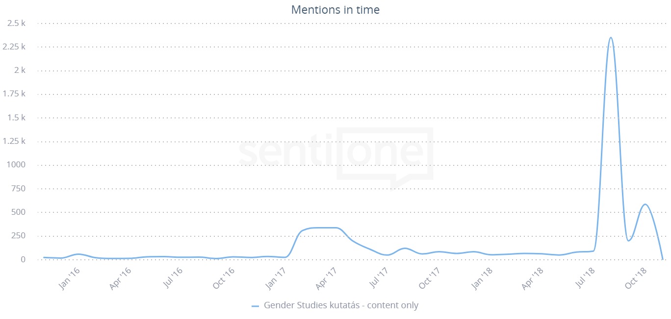 Ez elmúlt 3 év publikus online szöveges tartalmait vizsgálva a ‘genderszak’ témája a 2018. augusztus 8. és 20. közötti időszakban – a szak megszüntetését rögzítő kormányrendelet kiadásának idején – generálta a legtöbb tartalmat a magyar nyelvű internet hírportáljain: közel 1500 egyedi és a témához kapcsolódó felhasználói említést (cikket + kommentet).
