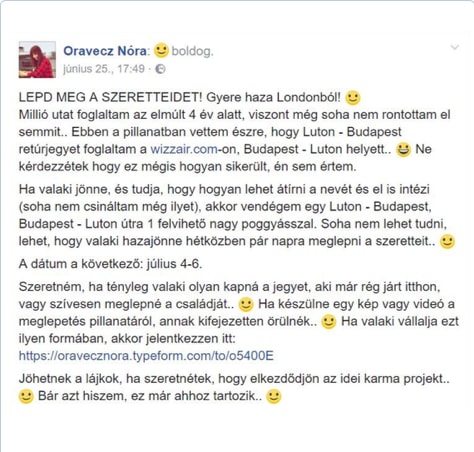 De akár egy megainfluencer számodra aranyat érő bejegyzése is ilyen lehet (Oravecz Nóra feat. Wizzair)…