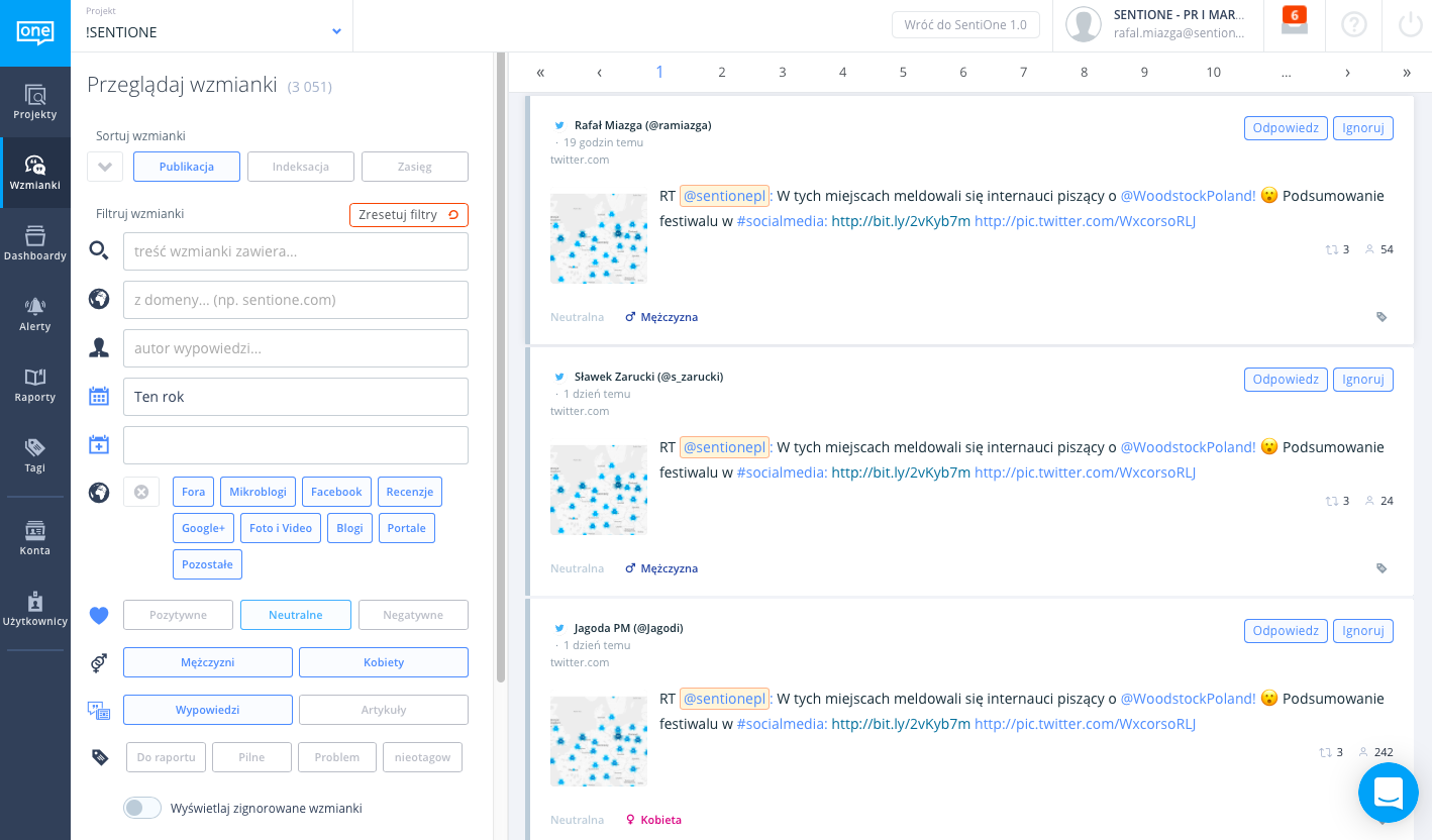 Chcielibyśmy też niniejszym zaznaczyć, że wszystkie funkcje SentiOne działają normalnie, ponieważ zmiany obejmują tylko warstwę wizualną. Tak, aby monitorowanie nielimitowanych słów kluczowych pośród social mediów i tysięcy blogów oraz portali niezmiennie pozostało źródłem nieskończonych inspiracji do rozwoju Twojej firmy.
