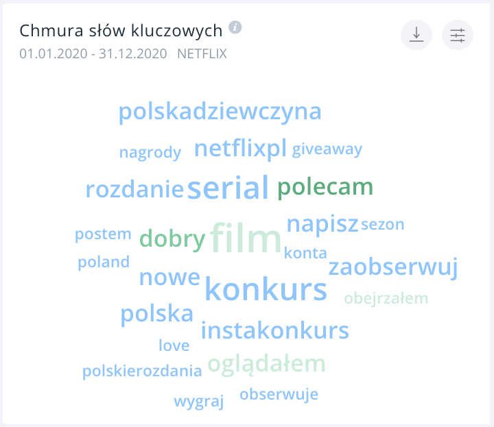 W jakim kontekście dyskutowano o Netfliksie? Jeszcze w 2019 to kluczowe seriale były silnikiem napędowym wzmianek, dyskusji i zasięgów (w Polsce był to zdecydowanie Wiedźmin). Natomiast w 2020 marka występowała najczęściej w kontekście słów takich jak: polecam, obejrzałem, co polecacie, jaki film. Oznacza to, że w 2020 na dobre rozwinął się trend online discovery – wyszukiwania i rekomendowania produktów i usług online.