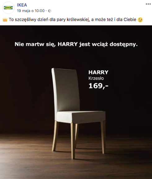 Royal Wedding odbił się echem również na polskich kanałach społecznościowych – prym wiodła IKEA, której żartobliwy post został udostępniony i polubiony tysiące razy: