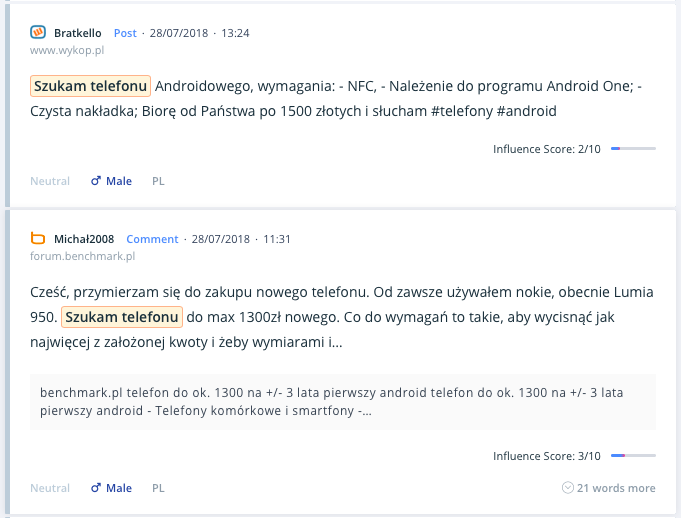 No właśnie – olbrzymia ilość danych dotyczących naszej firmy leży na wyciągnięcie ręki. Sięgnijmy po nią, przeanalizujmy – zróbmy z tego badanie opinii konsumentów. Wnioski przedstawmy zarządowi naszej organizacji w ten sam sposób, jak marketing przedstawia wnioski z badań realizowanych przez firmy badawcze za kilkadziesiąt, a czasem kilkaset tysięcy złotych. Tymczasem social listening jest zdecydowanie tańszy i szybszy.