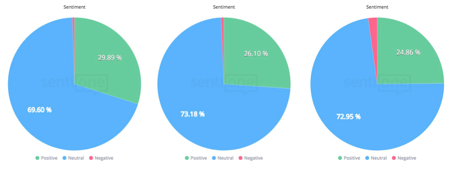 When it comes to the share of voice, Margot Robbie, nominated for her impression of Tonya Harding in “I, Tonya”, takes the lead. However, if we look further and analyze the sentiment of mentions, this is where it gets really interesting:
