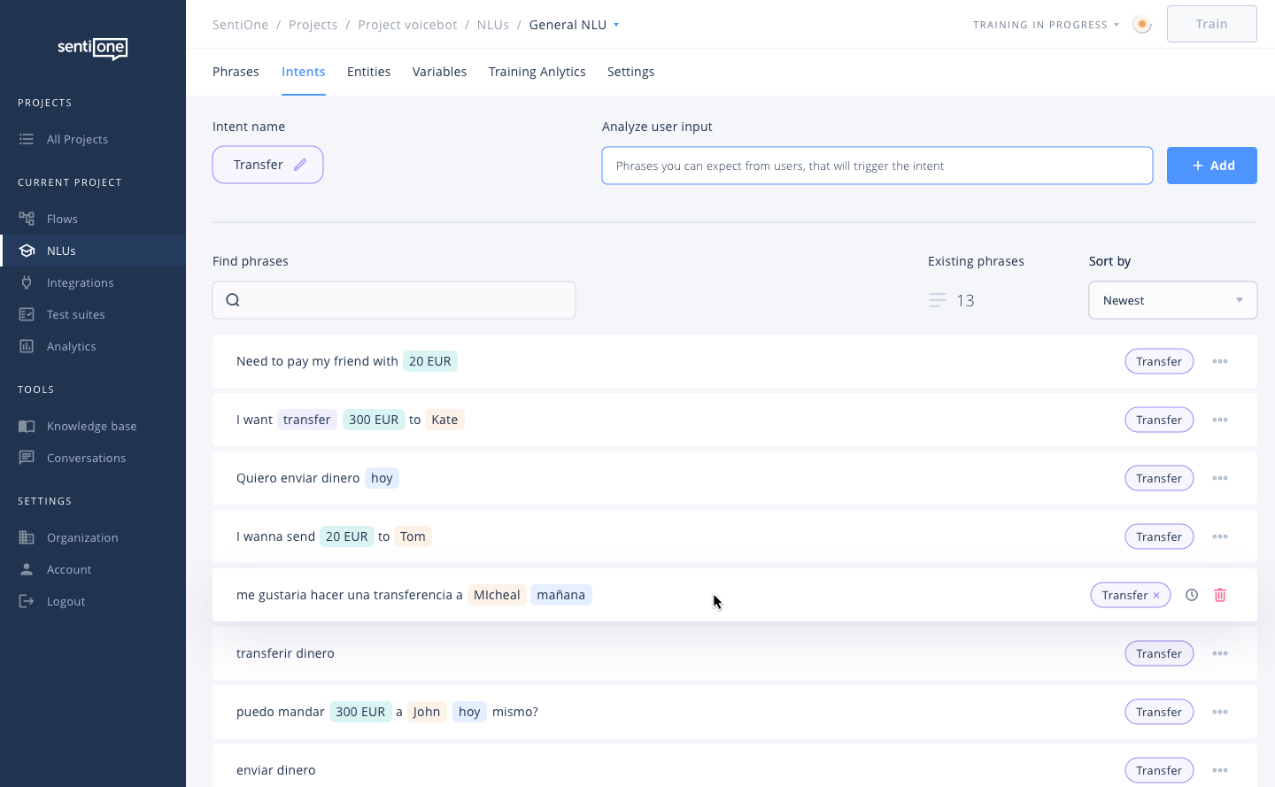 - NLU Schulungsmodus