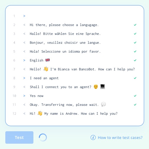 Buduj boty na szeroką skalę dzięki automatycznemu testowaniu. Po co marnować czas testując ręcznie? Automatyzacja zapewni jakość i wydajność każdego bota w czasie rzeczywistym.