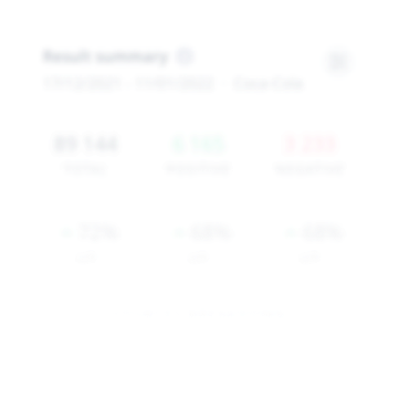 An overview of all of the results found for a given project. Aside from showing the total number of mentions, their sentiment, and their source share, it shows how the results have shifted compared to the previous period. Sentiment detection is based on the proprietary algorithm provided by SentiOne.